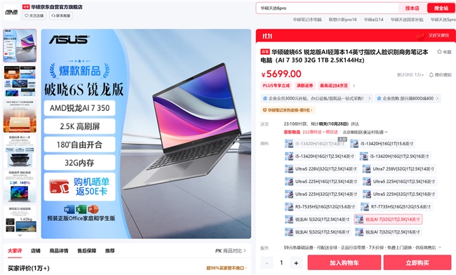 这款集强劲性能、智能体验与轻薄便携于一身的14英寸华硕破晓6S锐龙版AI轻薄商务本,现已全面上市。如果您正在寻找一款能够胜任多种办公场景的智能设备,不妨关注这款产品。更多详情及购买选择,敬请访问华硕商城及华硕京东自营官方旗舰店进行了解。