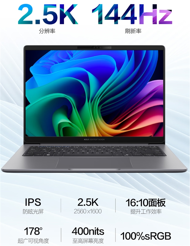 视觉体验方面,华硕破晓6S 锐龙版配备了一块14英寸的2.5K IPS高刷护眼屏。86%的高屏占比带来了沉浸感十足的视觉享受;144Hz的高刷新率则确保画面滚动与内容切换的丝滑流畅。此外,这款破晓6S锐龙版还拥有100% sRGB高色域与400nits的峰值亮度,让色彩表现真实饱满,即便在强光环境下也能清晰显示内容。而硬件级低蓝光技术有效减少了有害蓝光辐射,为需要长时间面对屏幕的用户提供了贴心的眼部保护。