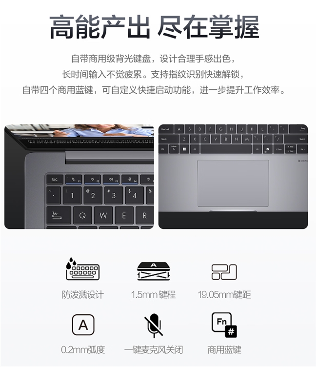 对于商务用户而言,设备的交互体验与数据安全同样重要。破晓6S锐龙版采用的商用级背光键盘手感出色,长时间输入也不易疲劳。四个可自定义的商用蓝键,能够一键启动常用功能,大幅提升操作效率。集成指纹识别功能的电源键,则实现了开机与解锁一步到位,既便捷又安全地守护了用户的隐私数据。