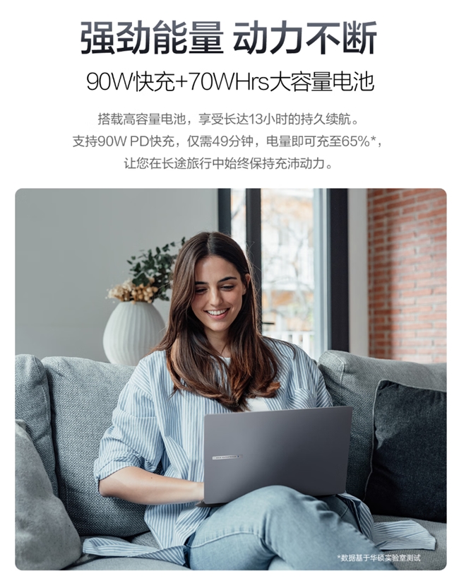 续航能力是衡量移动办公设备的重要标尺。得益于处理器出色的能效优化,并结合70Whr大容量电池与90W快充技术,破晓6S锐龙版可实现长达13小时的持久续航,轻松满足全天候办公需求。在电量告急时,仅需49分钟即可快速回血至65%以上,有效缓解用户的电量焦虑。