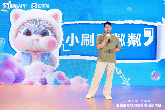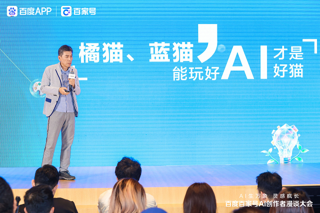 百度AI创作者KiddyLee周则分享了个人原创IP打造经验:将自己融入故事、专注打磨代表作、坚持原创,从角色到世界观全自主构建,实现个人IP可持续发展。他表示:“用好工具、坚持原创,普通人也能打造自己的IP。”蓝猫IP执行董事董金虎以“橘猫、蓝猫,能玩好AI才是好猫”为主题,分享了经典国民IP在AI时代的重启路径。他指出,AI成为连接创作者与IP的重要桥梁,海量同人内容为二创提供持续素材。蓝猫通过AI实现自我修复与再生,并与百度创作者共创多类型内容,通过高比例分成和流量扶持,实现“创作—分发—变现”闭环,标志着IP从流量依赖迈向价值深挖。