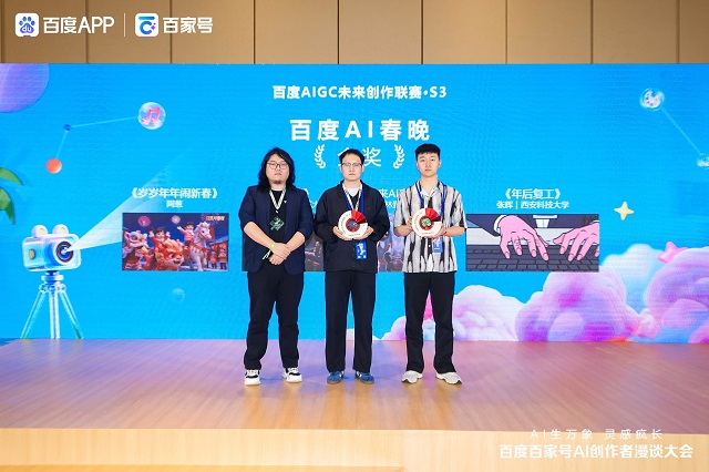 作为百度AI内容生态建设的重要抓手,百度AIGC未来创作联赛S3大赛在分会场同步揭晓重磅荣誉,2个月内参赛达3.6万人次,总分发量达27亿。其中,AI春晚带动创作者广泛参与,动漫赛道依托《蓝猫淘气三千问》《熊出没》等经典IP产出600余部内容,分发超2.7亿;文史赛道结合百科与搜索分发,推动优质内容长效传播。校园赛道,来自信阳师范大学团队的《见山是山》荣获10万元最高奖项BAI Genius